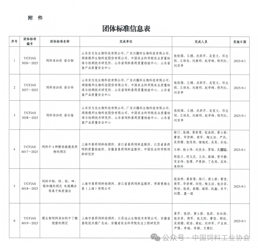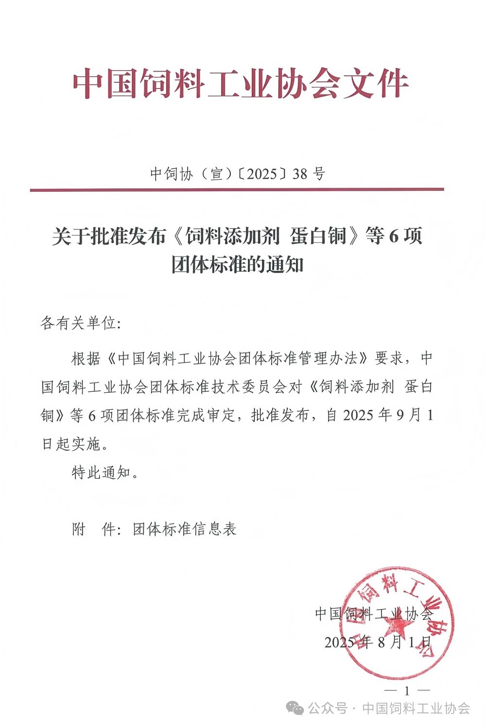 关于批准发布《饲料添加剂 蛋白铜》等6项团体标准的通知
