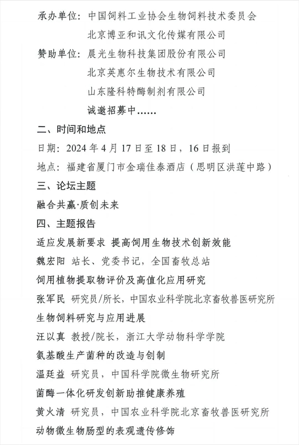 关于召开第二届生物饲料创新发展论坛的通知
